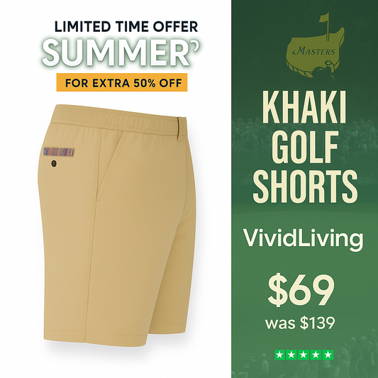Loopory Mens Casual Shorts-Drawstring Summer Beach Stretch Twill Golf Shorts-Anti-Wrinkle Fabric-5"-Khaki-4XL