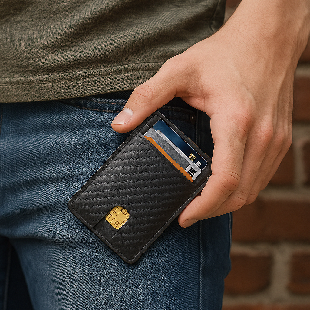 Design fino e leve – Tamanho compacto de 11,4 × 8 × 0,9 cm, pesando apenas 35 g, perfeito para o uso diário.